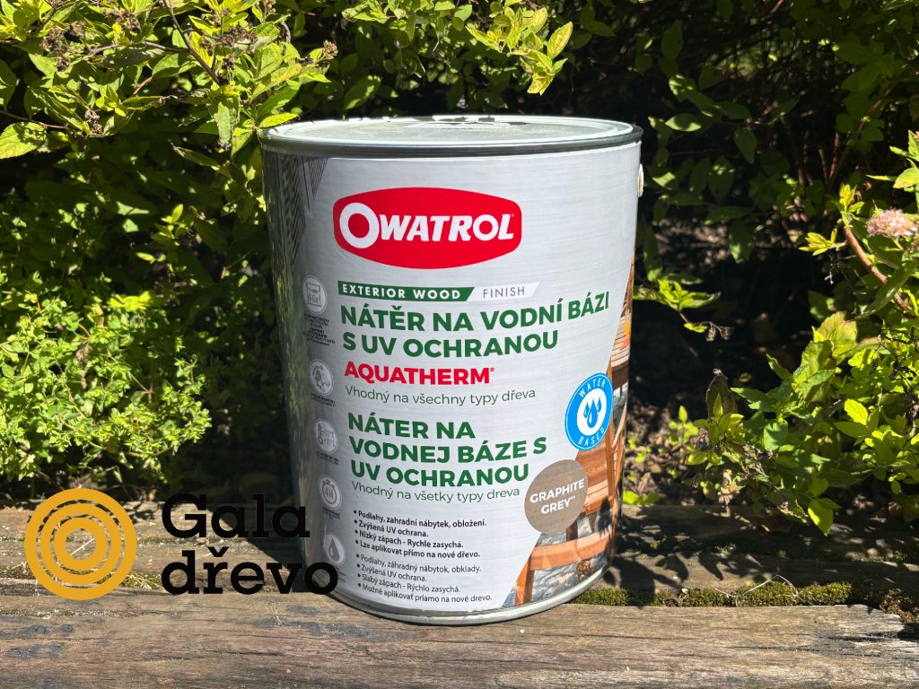 OWATROL AQUATHERM je moderní nátěr na vodní bázi, určený pro hloubkovou ochranu a estetické sjednocení dřeva v exteriéru. Nová receptura vychází z oblíbeného produktu AQUADECKS® a přidává inovativní UV filtr, který zajišťuje delší trvanlivost barev i samotného nátěru. Hodí se pro nové i starší povrchy a je plně kompatibilní s původním AQUADECKS®.