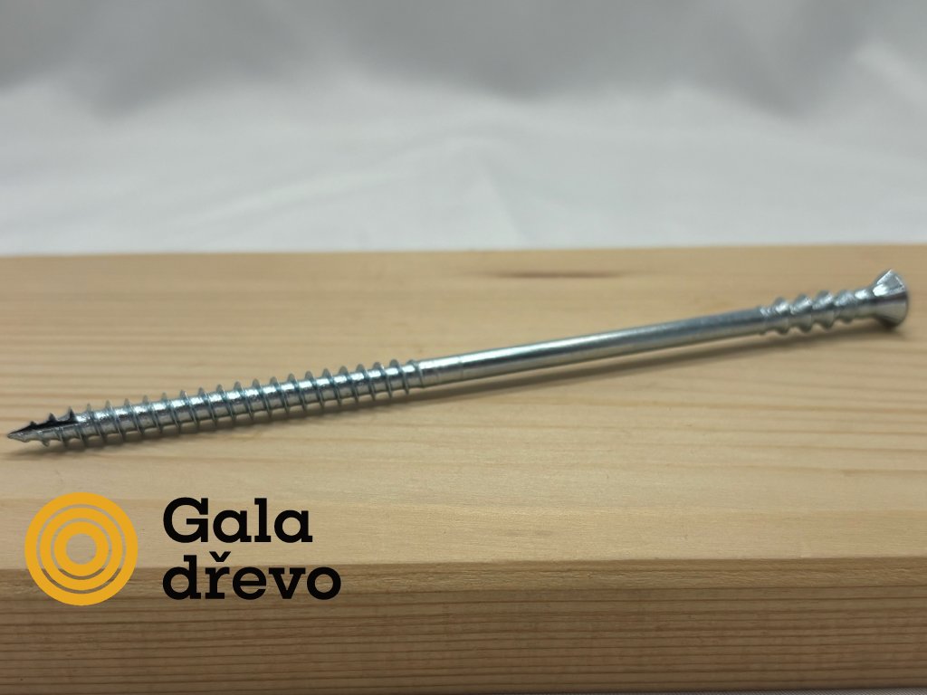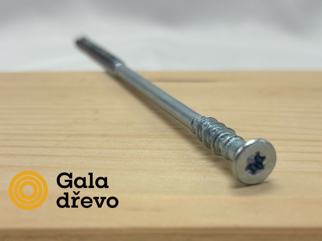 Vyroben je z kvalitní oceli se speciálním tepelným zpracováním, které zajišťuje vysokou elasticitu při pevnosti 1 000 N/mm². Zápustná hlava umožňuje snadné zapuštění do dřeva bez potřeby předvrtání a minimalizuje poškození povrchu.